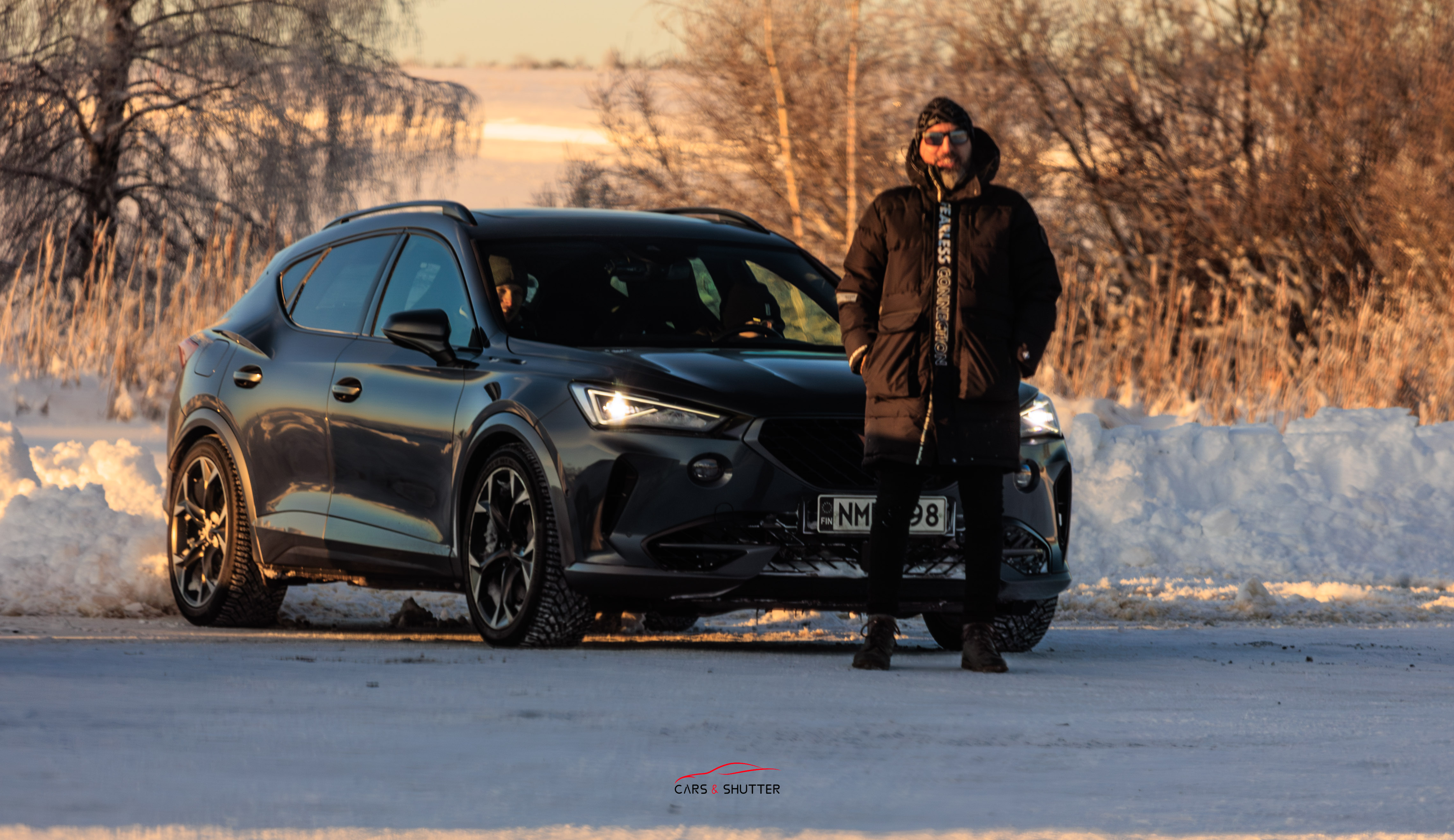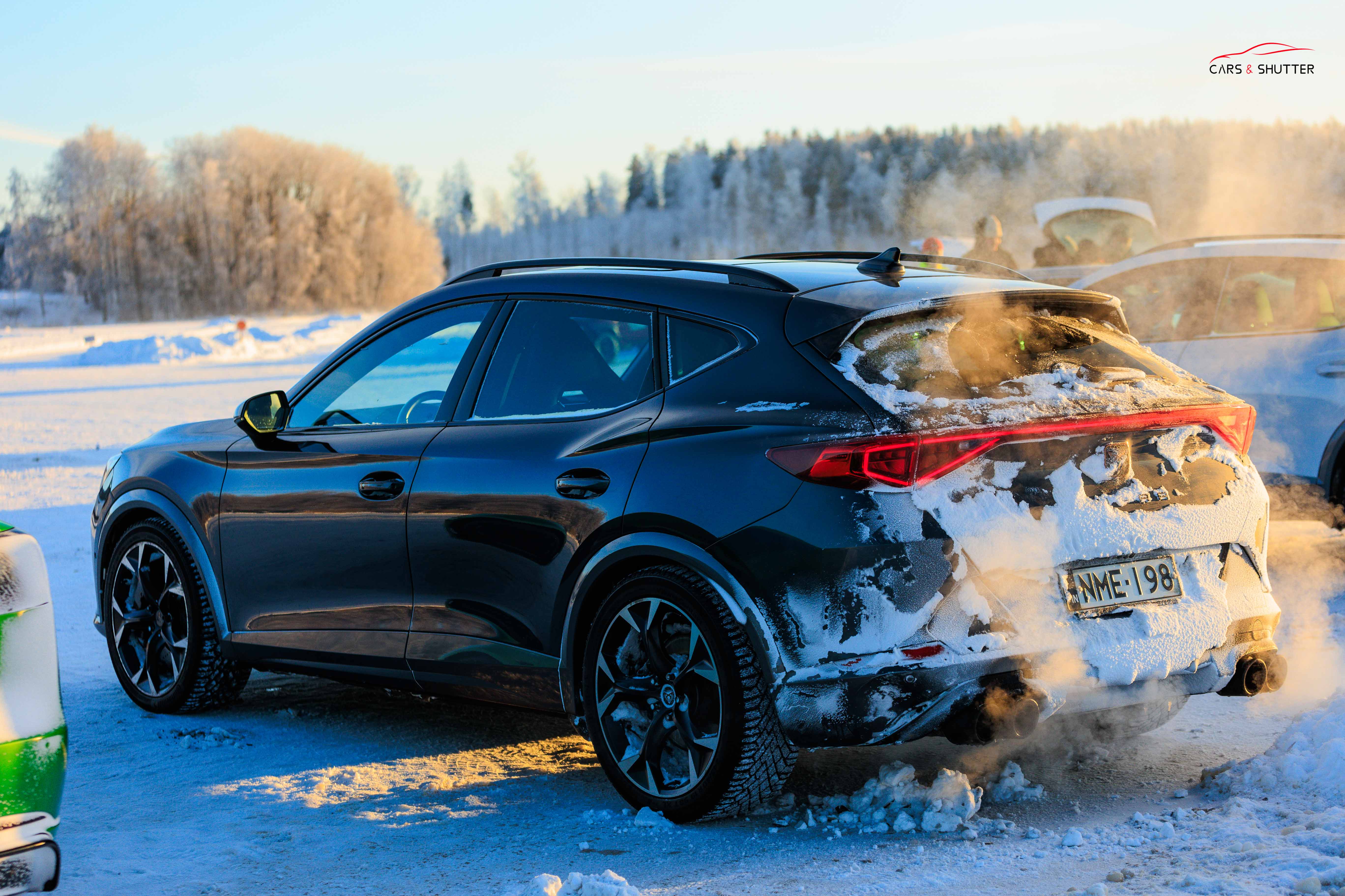 I started by first hopping in a sweet Cupra Formentor VZ3 that belonged to Joao, who had some previous experience on ice tracks. Now this car already has some impressive specs in stock form: A responsive 2.0 Tubro (TSI) engine with 310HP stock power, 4Drive AWD system, adaptive chasis control (DCC) suspension, Brembo breaks and 19″ rims. But Joao improved things even more with even bigger Brembo upgraded brakes from an RSQ3, to a Racing Line R600 air intake system and many others mods to list, It was nothing short of spectacular to go on this ride , especially that the Forminator can go sideways like nobody’s business. Joao managed to make his car dance across the ice, pulling off clean drifts, that I am happy I captured from many angles.